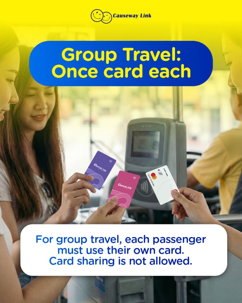 Have your preferred payment ready before boarding — either a ManjaLink card or a bank card. All Visa or Mastercard credit, debit, and prepaid cards are accepted.